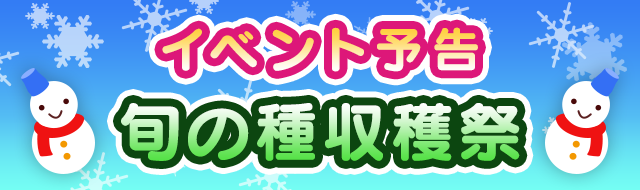 【開催期間】12月15日 12:00 ~12月20日 23:59 旬種、大量ゲットのチャンス!! 栽培・収穫して、ランクインを目指そう!